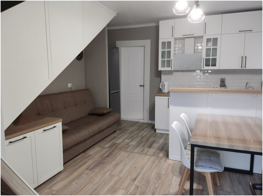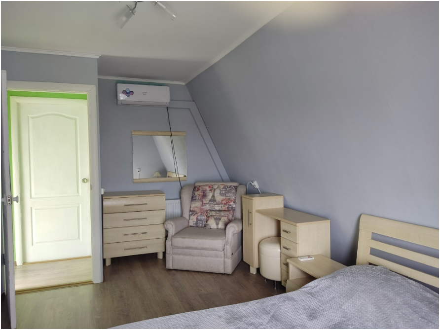 В доме 4 спальни и общая гостиная, совмещенная с кухней. Спальные места: двуспальная кровать + раскладное кресло (мансарда) , двуспальная кровать (спальня на 2м этаже), односпальная кровать (вторая спальня на 2м этаже), двуспальная кровать (спальня на 1м этаже).