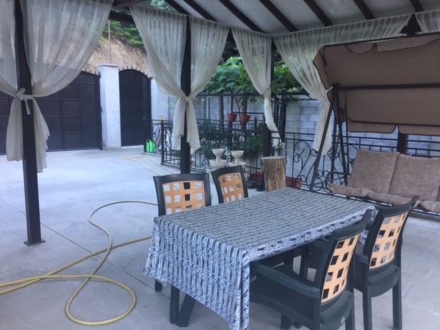 Зона отдыха (над домиком и ею пользуются гости только этого дома), переносной мангал, стол, качеля, парковка, закрытых гаражей нет.