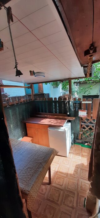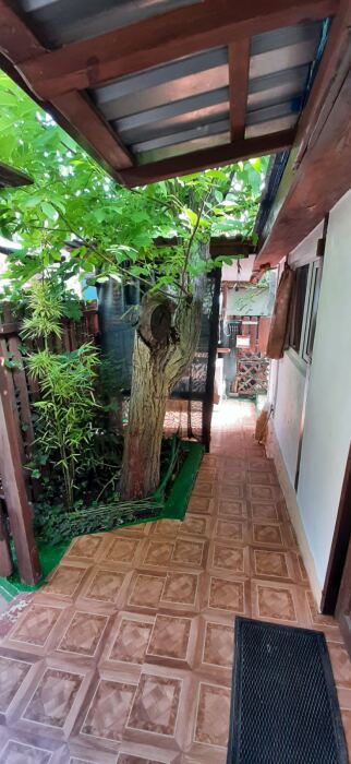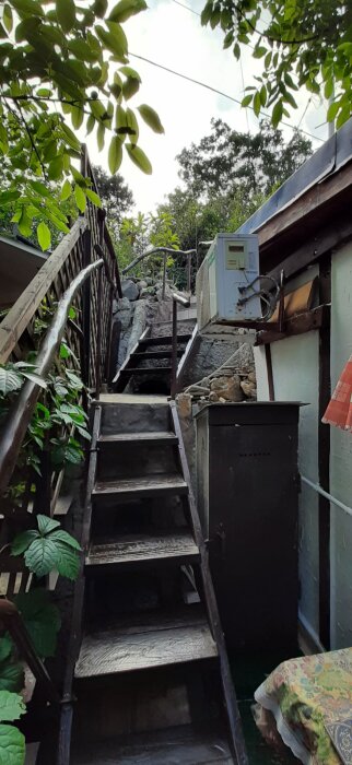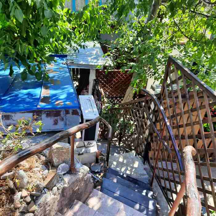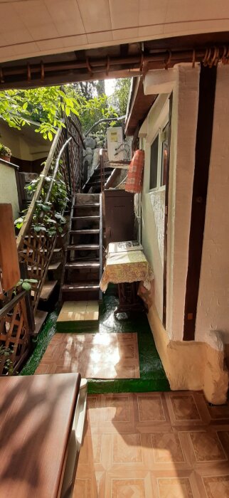 За домом лестница ведет на уютный маленький участок с мангалом.