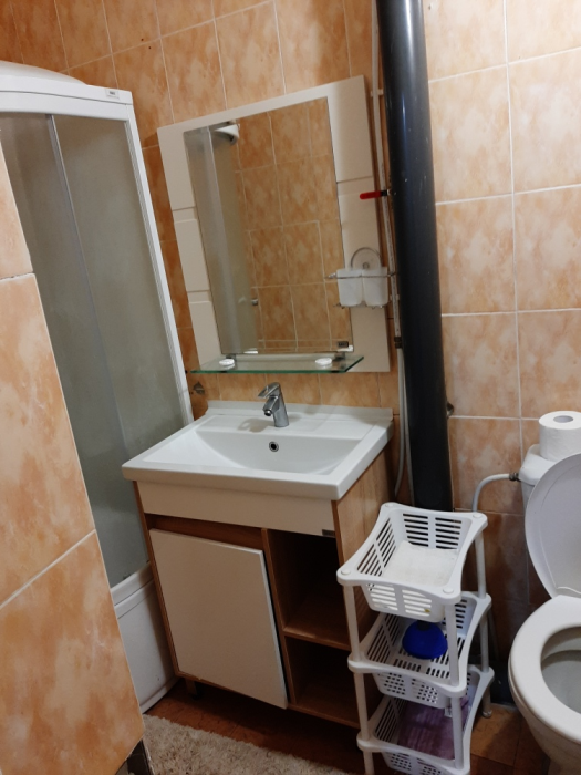 Комната студия со своей обеденной зоной и летней террасой. В комнате своя мини кухня, микроволновка, плитка, телевизор, душ, туалет.