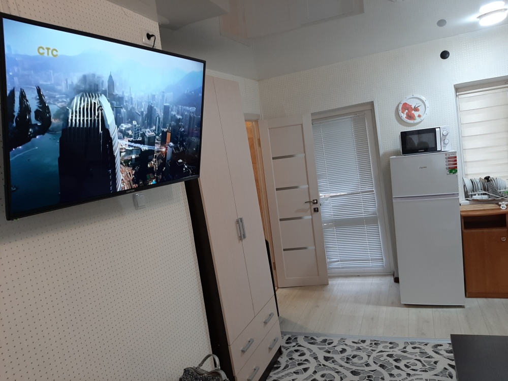 Комната студия в 10 минутах ходьбы от моря. До торгово-развлекательного комплекса More прогулка занимает 5 минут, до набережной с кафе и развлекательным центром «Мир развлечений» - 10 минут.