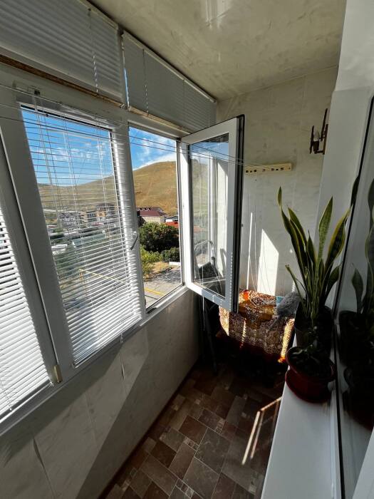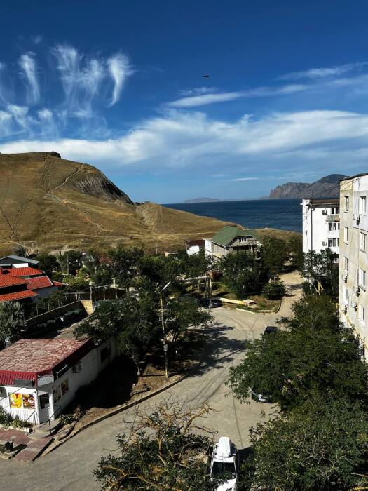 Из окна открывается прекрасный вид на море и горы.