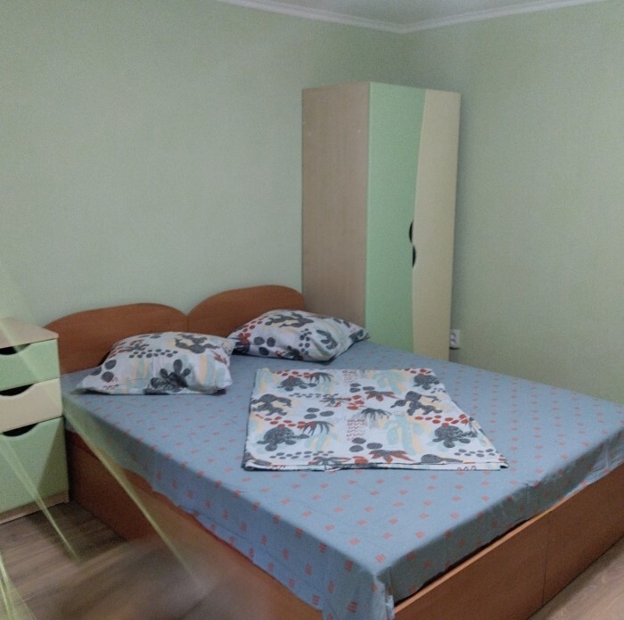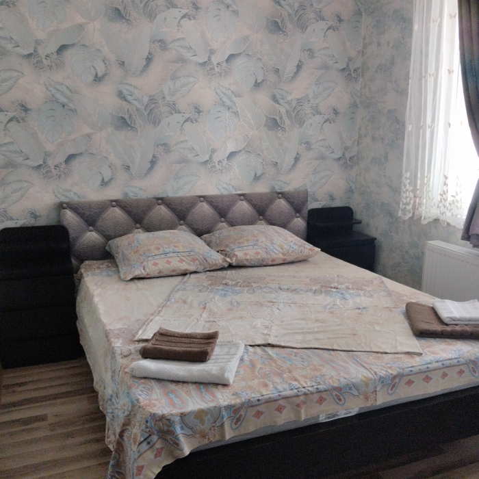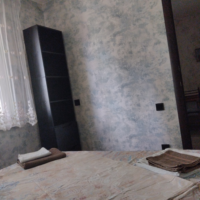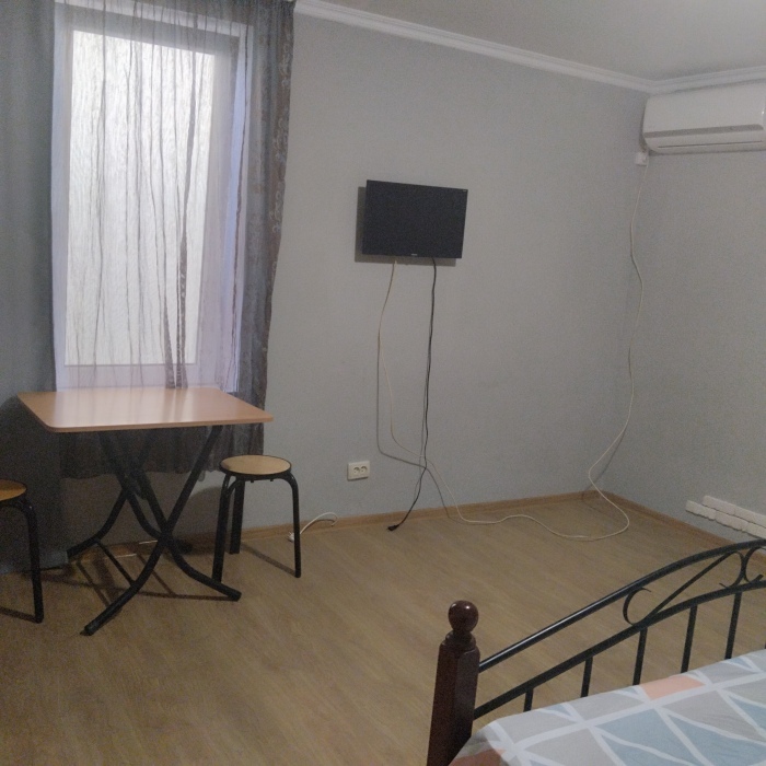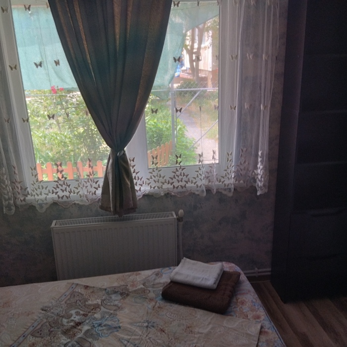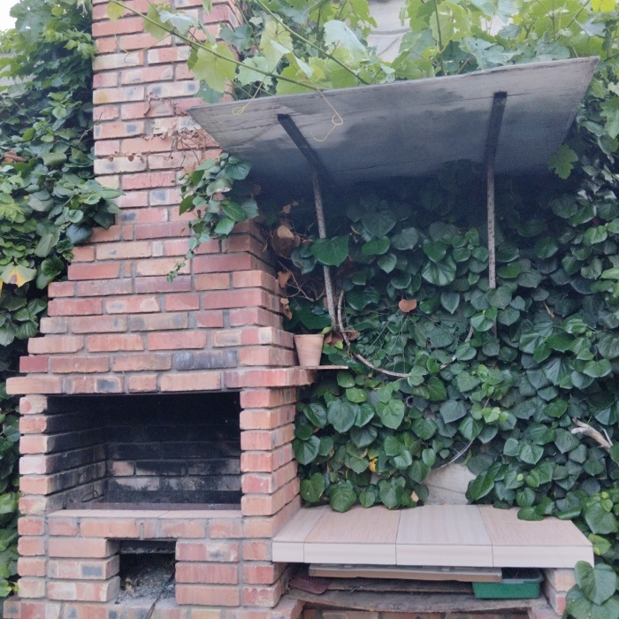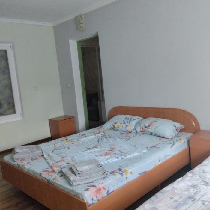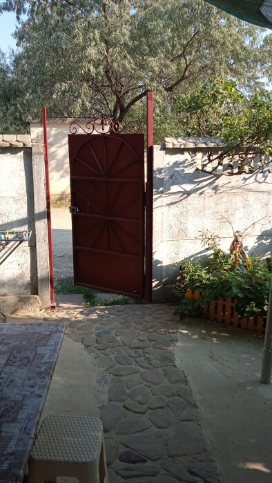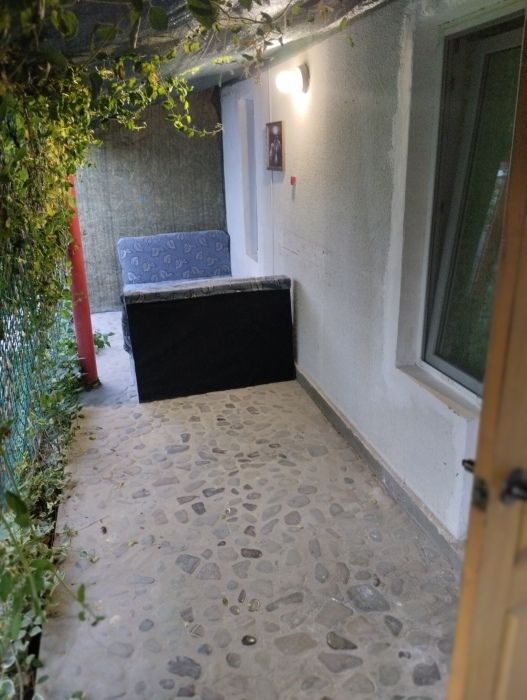 Во дворе зелено, растут цветы и плодовые деревья, имеется мангальная зона и беседка с телевизором. К услугам гостей оборудованная общая кухня с обеденной зоной. Для детей есть детская площадка.
