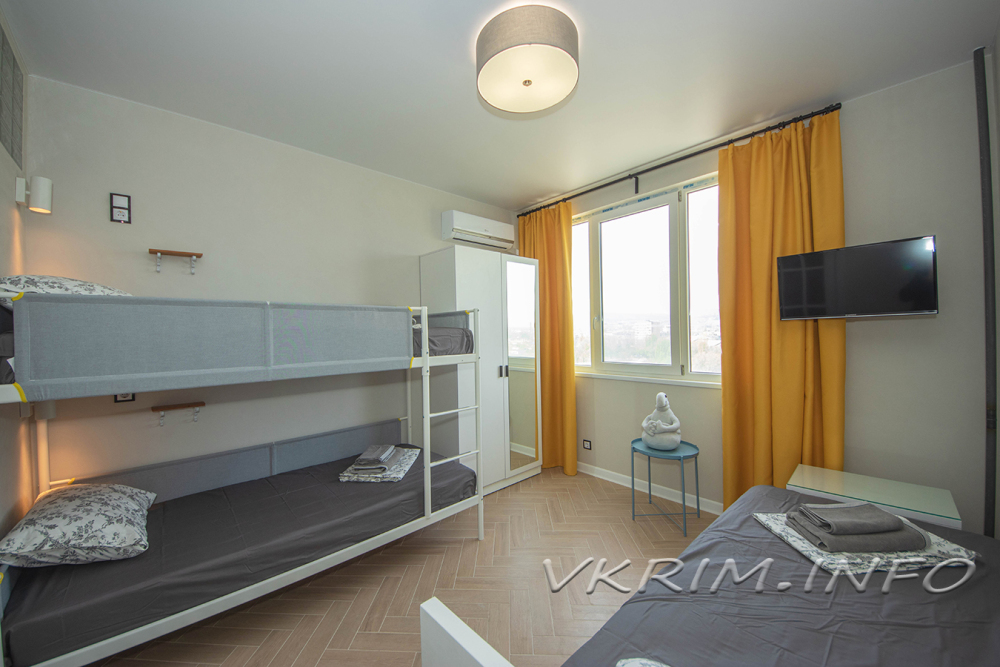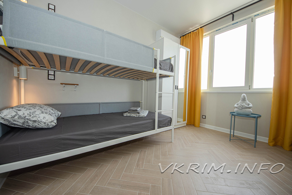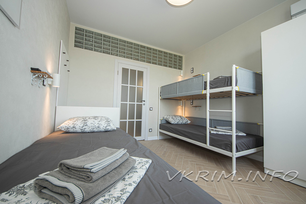 • 1 двуспальная кровать, 1 односпальная кровать, 1 двухъярусная кровать