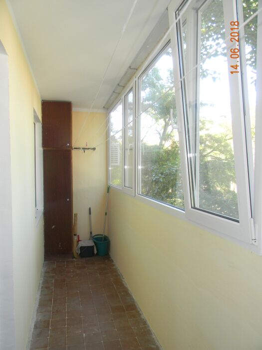 Два застекленных балкона. Квартира на две стороны, тень от деревьев, окна выходят во двор.