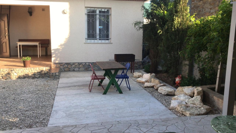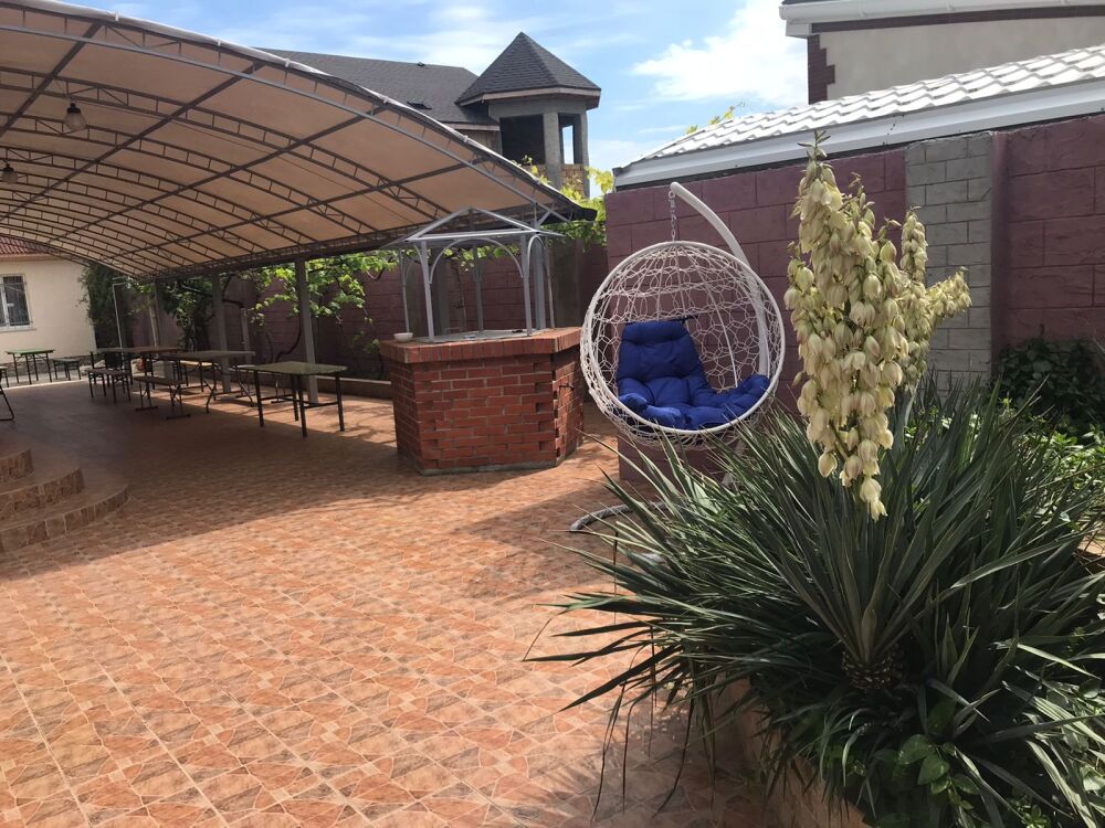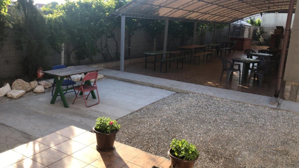 Дворик оборудован столиками, зоной для приготовления шашлыка.