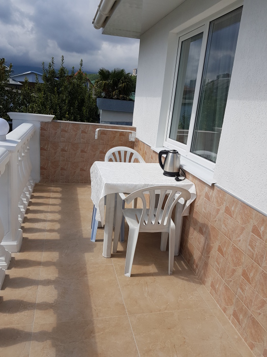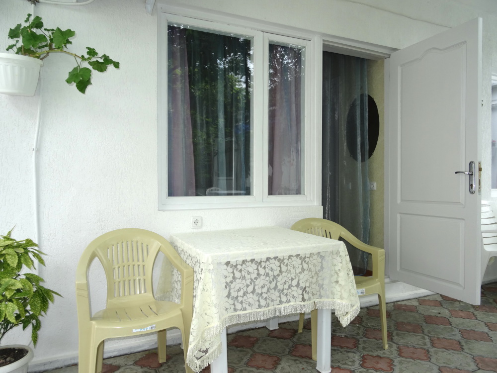 Номер на 1 этаже с выходом в сад, свой столик у номера. Номер оснащён всей необходимой мебелью, интернет, постельное бельё, комплект полотенец. Туалет и душ в номере (туалетные принадлежности личной гигиены), фен. Выдаются пляжные принадлежности (коврик, полотенце), гарантируется надёжность и охрана номера.