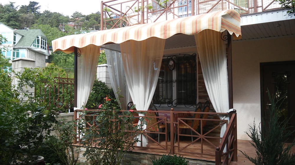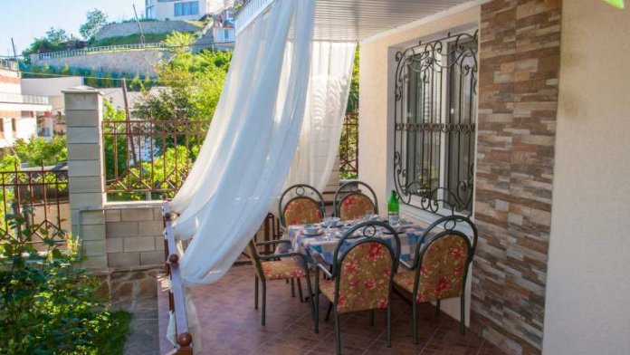 Имеется открытая терраса, защищённая от любопытных глаз, где ваша компания может посидеть за вкусным чаем и насладиться уютной атмосферой вечернего Гурзуфа.