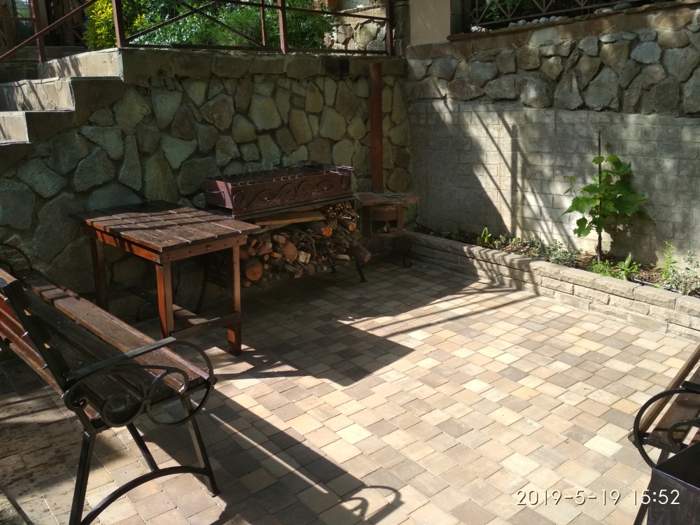 Сооружена площадка с дровяным мангалом и казан-мангалом, для приготовления блюд на открытом воздухе, а также качели на заднем дворике .