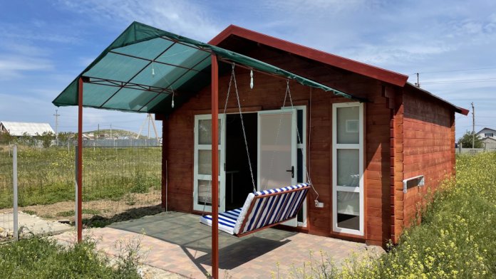 Деревянный домик сдается в летний период. Из мини бруса. Со всеми удобствами, с кухней.