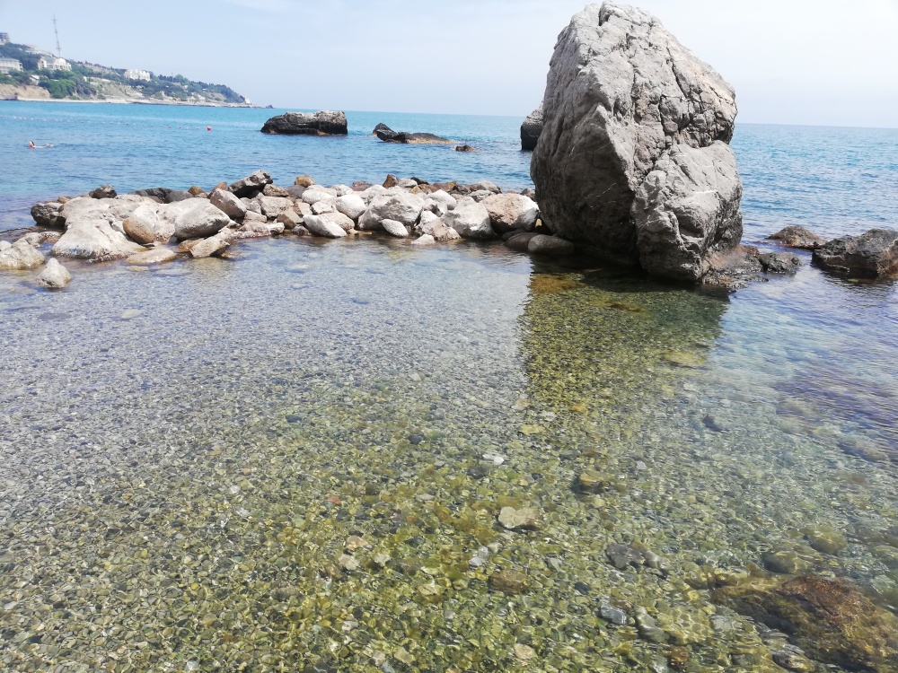 до него 5-7 мин. и «Нарышкинские камни» мин. 10-12 пешком ( он же «башмак») он более удобный, в воде живописные камни с которых можно понырять, есть зона с мелкой галькой для маленьких детей.