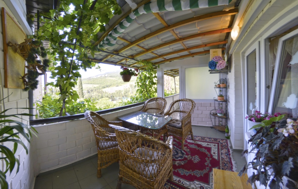 Приглашаем Вас окунуться в волшебную атмосферу Гурзуфа, сняв комфортабельный этаж дома в живописном уголке Крыма,в одном из красивейших мест планеты на побережье Чёрного моря. Предлагаем для вашего отдыха второй этаж нашего дома ,расположенного в 10-12 минутах ходьбы прогулочным шагом от набережной и пляжа ,с видом на горы и море! К вашим услугам две раздельные части этажа ,соединённые просторным балконом ,оборудованным для отдыха. В первой части этажа-большая кухня ,оснащённая всей необходимой бытовой техникой(холодильник,газовая плита с электродуховкой,посудомоечная машина,стиральная машина) и посудой ;две уютные спальни(в каждой двуспальная кровать,кондиционер и телевизор);лоджия с диваном ;санузел Во второй части этажа комфортная комната-студия на двоих (кондиционер ,двуспальная кровать ,кухня с барной стойкой ,холодильником и плитой);санузел. Также предусмотрена отдельная зона отдыха.Максимальная вместимость 4-6 человек .Минимальный срок проживания 7 суток! Цены от 4500 до 9000/сутки