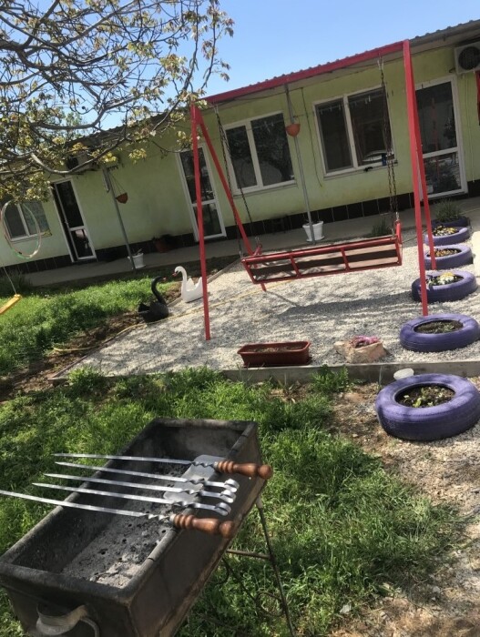 Уютный закрытый дворик с парковкой. Зона отдыха. Кухня общая на 2 номера: 2 раковины, стиральная машина, микроволновка, газовая плита, большой холодильник и вся необходимая посуда. Интернет, Wi-Fi на всей территории двора.