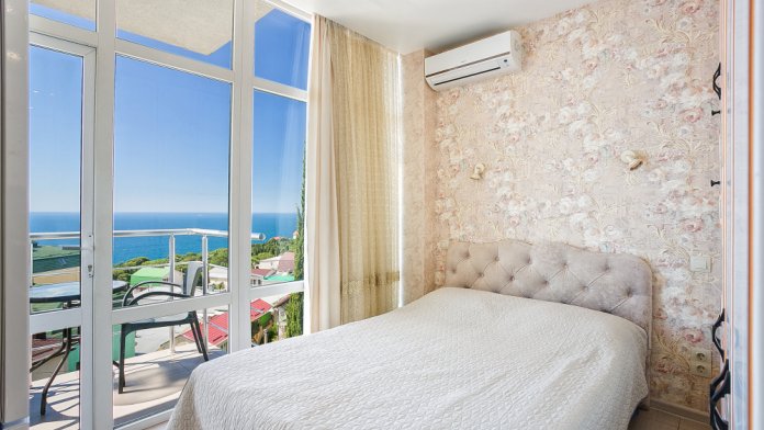 Красивая светлая квартира студия с шикарным видом на море и горы перед Мисхорским парком.