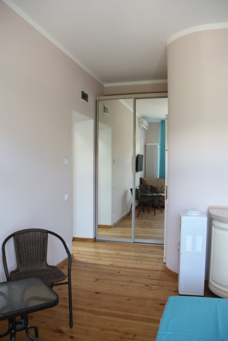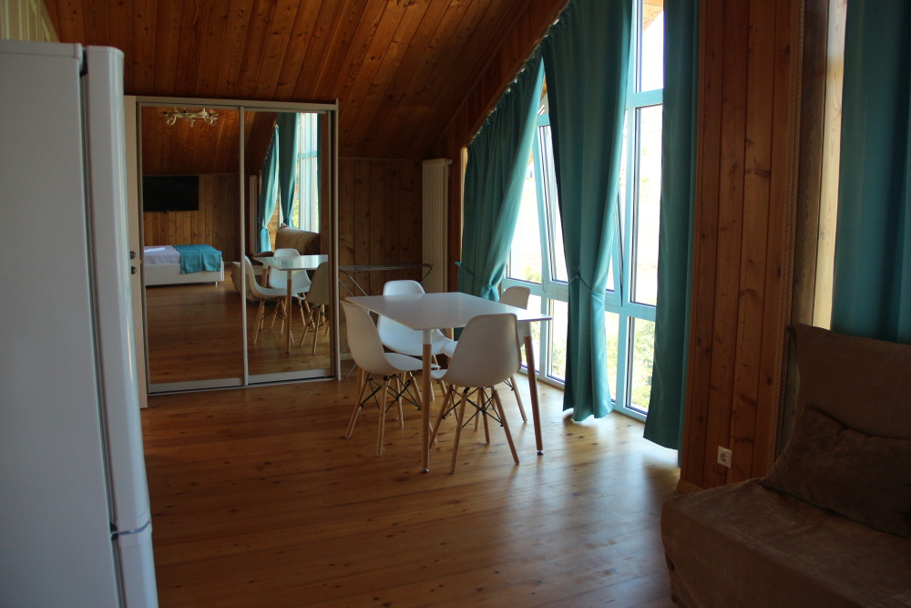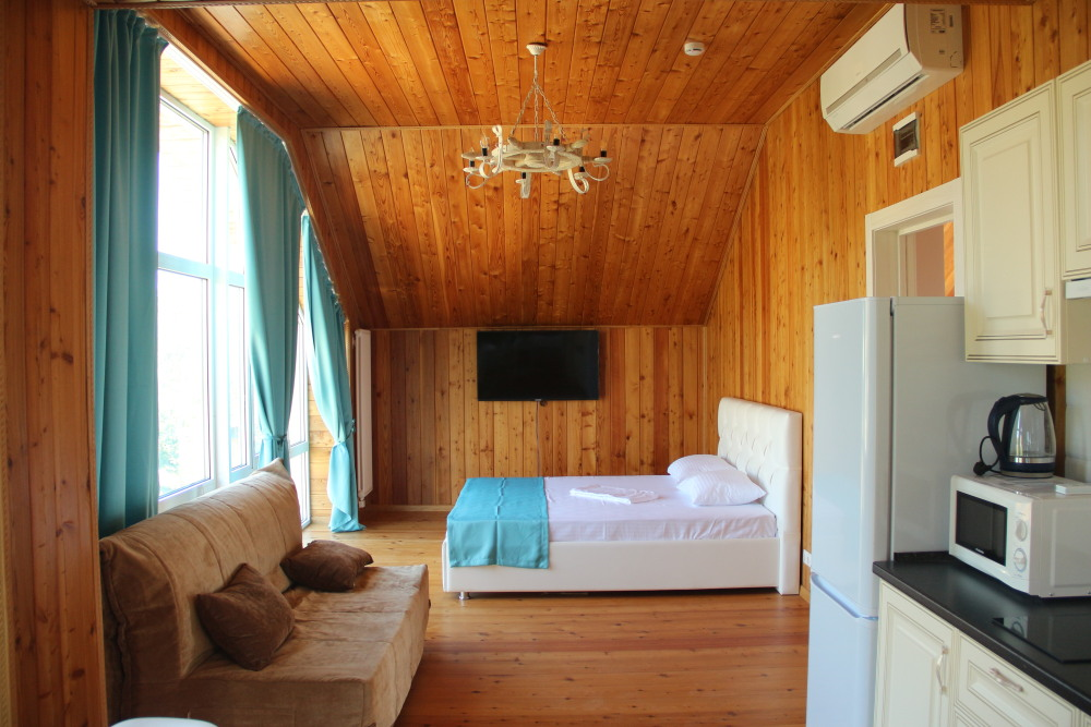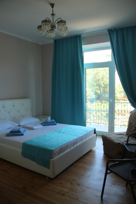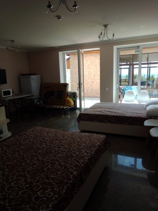Номер класса люкс с прямым выходом во двор, можно использовать для людей с ограниченными возможностями! Во дворе беседка с мангалом, барбекю зоной и панорамным видом на море. Постройка 2021 года, все новое. Номер оборудован всем необходимым, полноценной кухней, кондиционером и посудой.