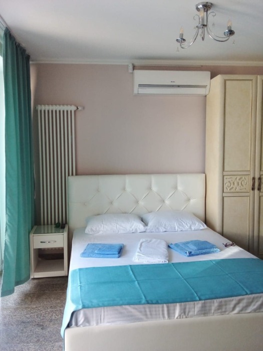 Представляем вашему вниманию изысканный номер с захватывающим видом на море. В номере обустроена роскошная двуспальная кровать с ортопедическим матрасом, обеспечивающим максимальный комфорт и здоровый сон. Этот номер, построенный в 2021 году с использованием современных технологий и европейского дизайна, оснащён последними удобствами, включая высококачественный телевизор и современный кондиционер, создающий оптимальный климат в любое время года. Расположенный всего в четырёх минутах ходьбы от берега моря, этот номер обещает незабываемые утренние и вечерние прогулки по побережью.