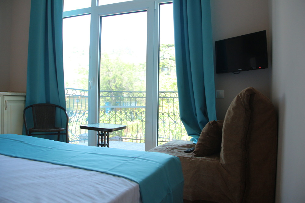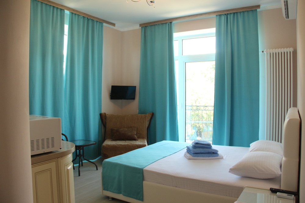 Элегантные номера с захватывающим видом: каждый из 11 тщательно спроектированных номеров выходит на собственный балкон, откуда открывается потрясающий вид на величественный заповедник кара-даг или чарующее черное море. Просыпайтесь под нежные звуки природы и наслаждайтесь живописной красотой прямо из своей комнаты. Интерьеры продуманно оформлены и оснащены телевизорами с плоским экраном, кондиционерами и просторными местами для хранения вещей, что обеспечивает комфортное и удобное пребывание.