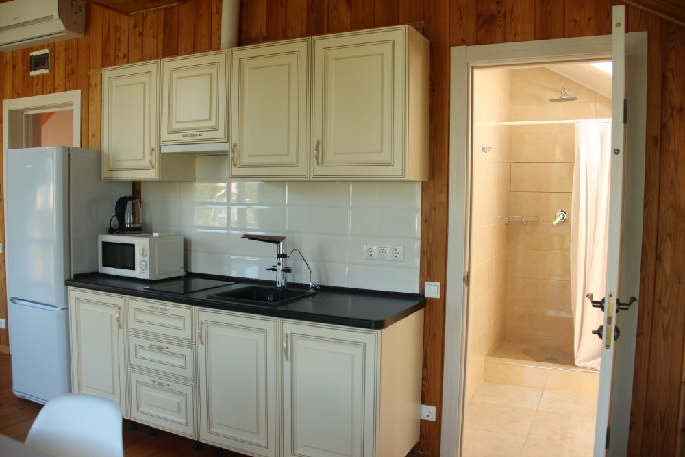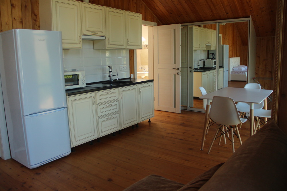 Полноценная кухня в номере позволит вам наслаждаться любимыми блюдами, приготовленными своими руками. Она оснащена всем необходимым для создания как простых, так и изысканных кулинарных шедевров.