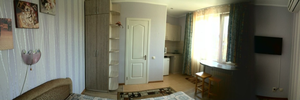 Два 2-местных и два 4-местных номера. Номера выполнены в виде однокомнатной квартиры-студии, со всеми удобствами. Кондиционер, холодильник, телевизор, интернет WI-FI, туалетная комната с душевой кабиной, стиральная машина-автомат. Автономное отопление, горячая-холодная вода постоянно.