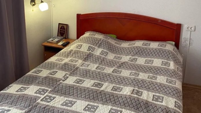 В номере мебель, большое зеркало, санузел, большой балкон 8 м² с балконной мебелью. С балкона открывается панорамный вид на море и Аю-Даг. В стоимость проживания включено 3-х разовое питание.