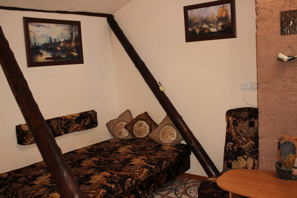 Возможен отдых двумя небольшими семьями с маленькими детьми (четыре больших и два маленьких дивана).