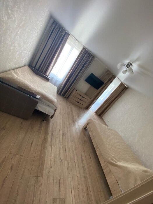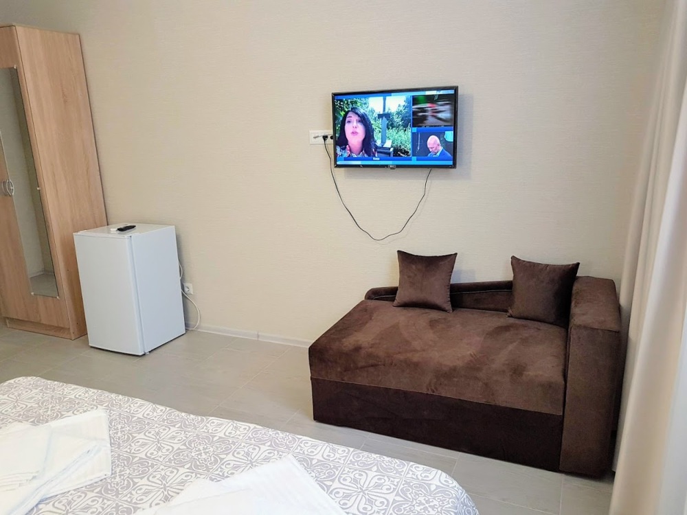 Стандартный трехместный номер оборудован двумя раздельными кроватями с качественными ортопедическими матрацами и удобным раскладным диваном. В номере есть кондиционер, телевизор, холодильник, шкаф для одежды, скоростной Wi-Fi.