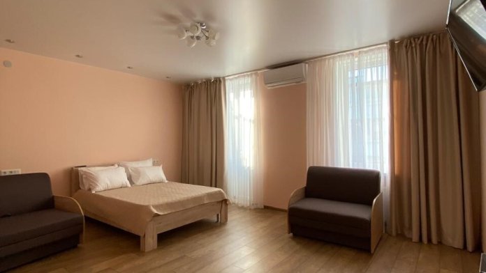 Стандартный двухкомнатный номер состоит из двух смежных комнат, каждая из которых оборудована двумя раздельными кроватями с качественными ортопедическими матрацами. В номере есть кондиционер, телевизор в каждой из комнат, холодильник, шкаф для одежды, скоростной Wi-Fi.