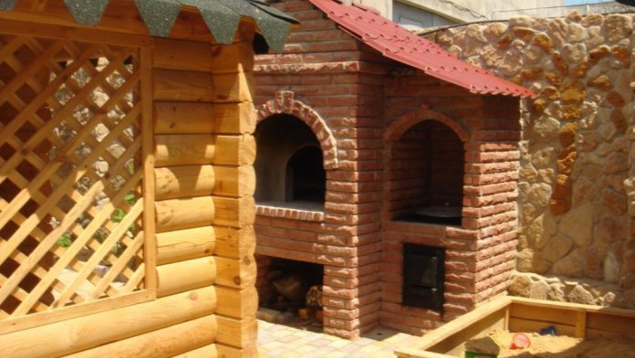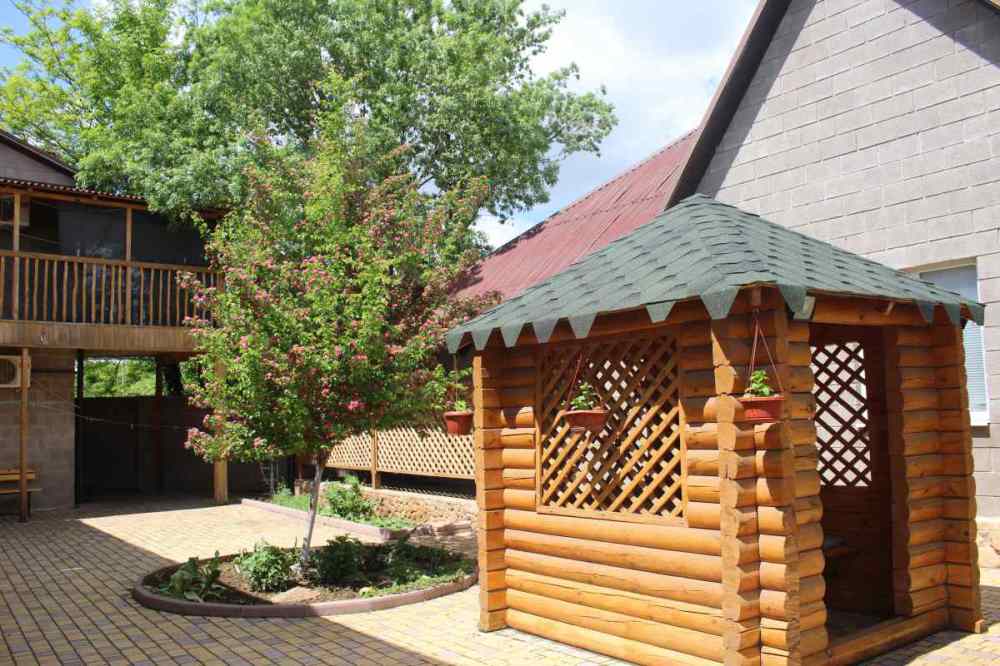 Во дворе стационарная деревянная беседка отдыха, кирпичная печь-мангал, сауна ( на дровах, с камином, бассейном).