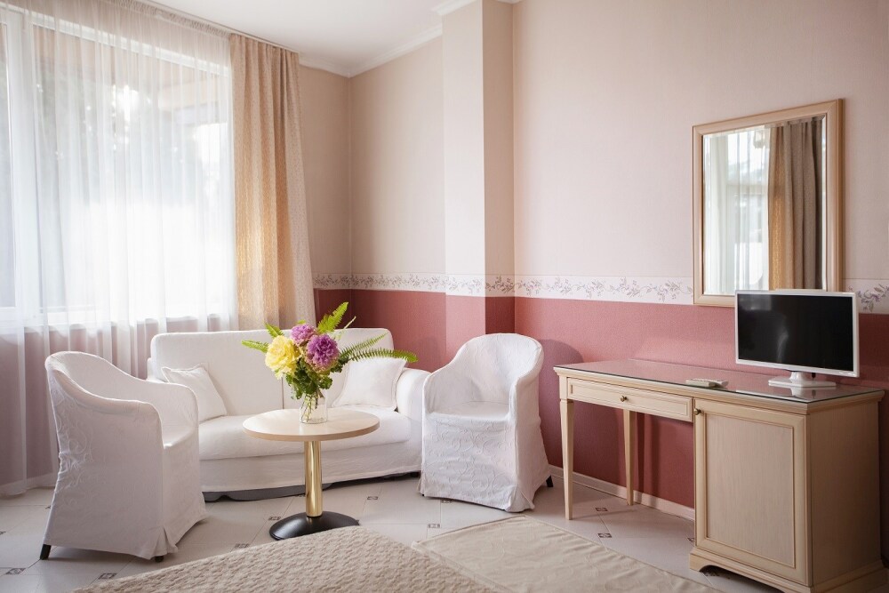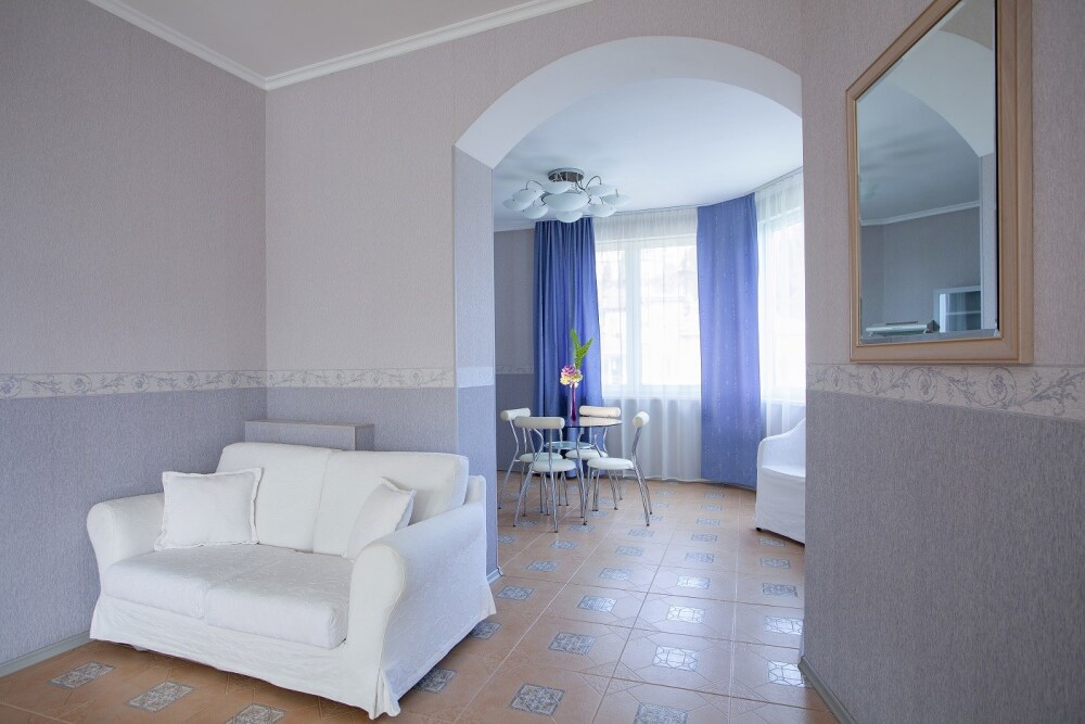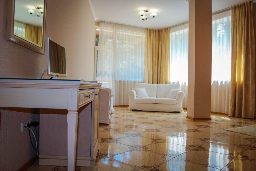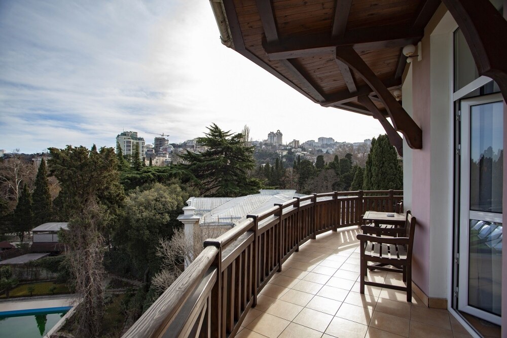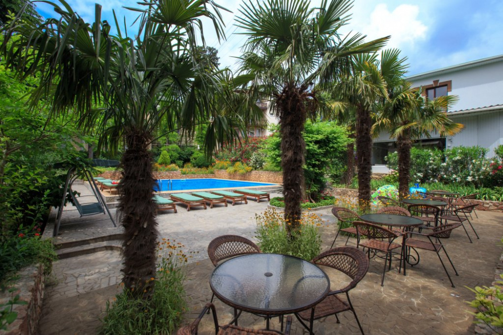 Гостевой дом расположен в парковой зоне города Ялта. На территории обустроен прекрасный сад, в котором каждый найдет укромный уголок по своему вкусу. В стоимость включено посещение открытого бассейна, спортивного зала и услуги парковки.