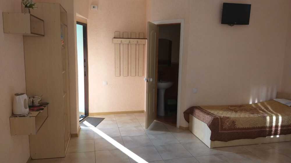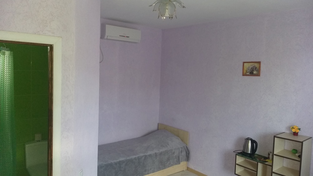 У нас отдых проходит очень спокойно, т.к. всего 5 номеров. В каждом номере кондиционер, санузел, кабельное ТВ, Wi-fi, матрацы ортопедические.
