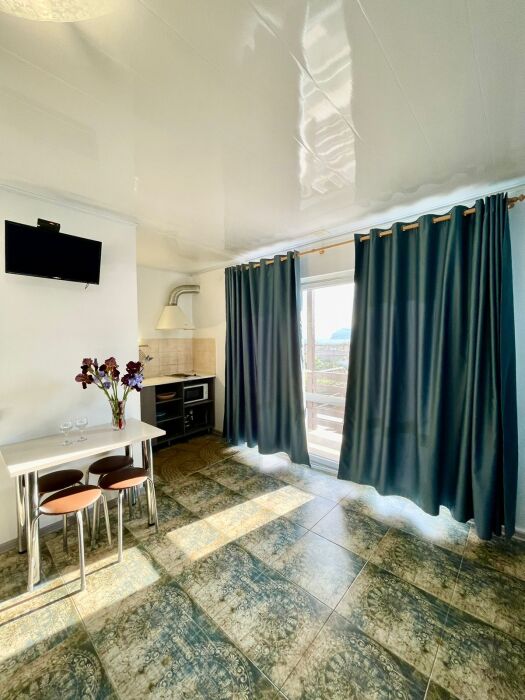 Четырезместный Номер-студия на втором этаже, с видом на море и горы. Есть абсолютно всё, что нужно для отличного отдыха.