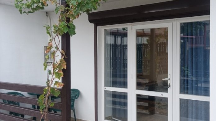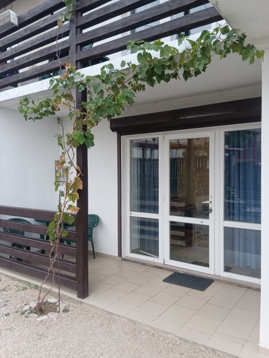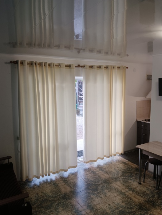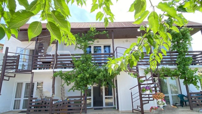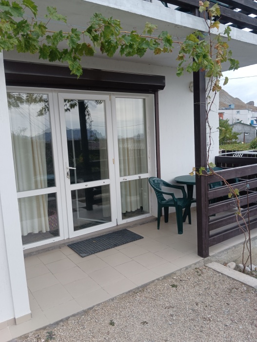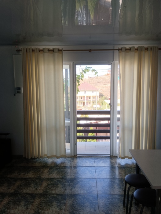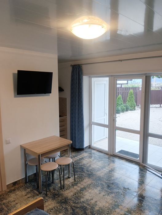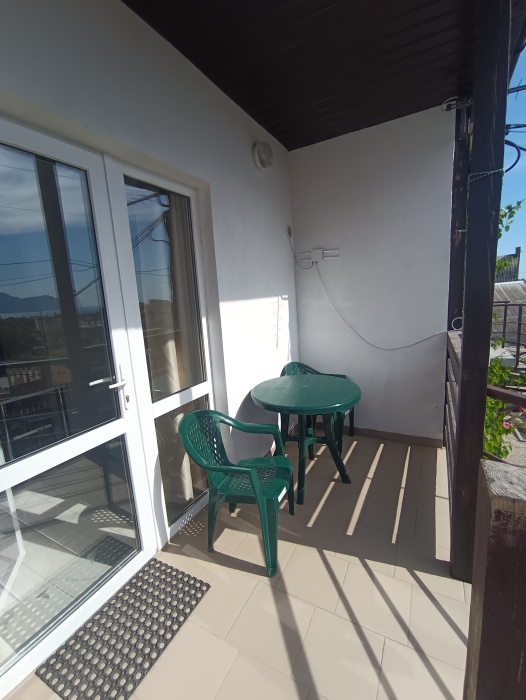 Гостевой дом «Тихий дворик» состоит из 6 отдельных номеров-студий. Номера рассчитаны на 2-4 человек. В каждом номере своя кухня со всей посудой и техникой, душ, туалет. В каждом номере телевизор, холодильник, кондиционер. Зона WiFi по всему дому. Во всех номерах есть балкон со столом и стульями для отдыха. На втором этаже комнаты с видом на море и горы.