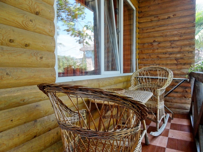 Терраса с летней мебелью у входа в номер.