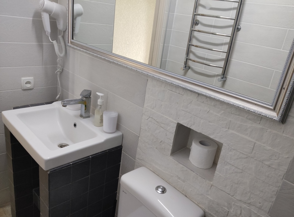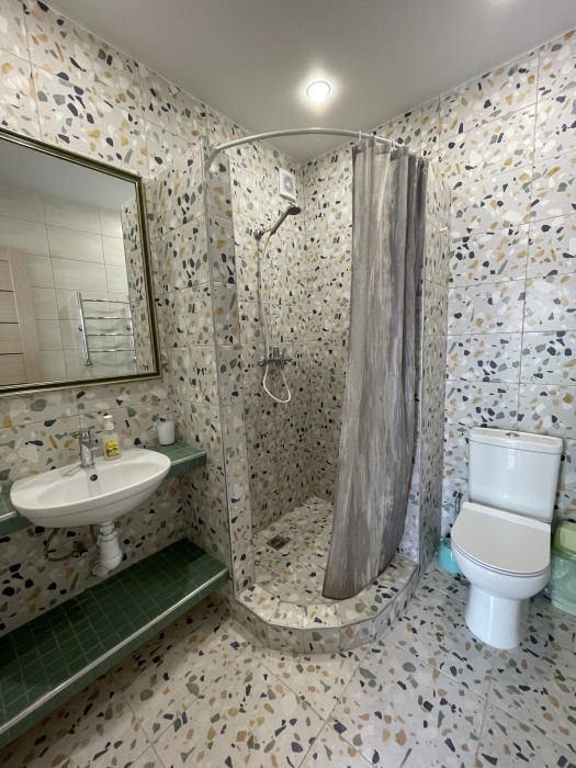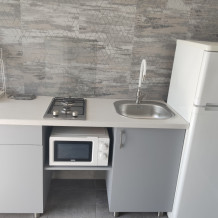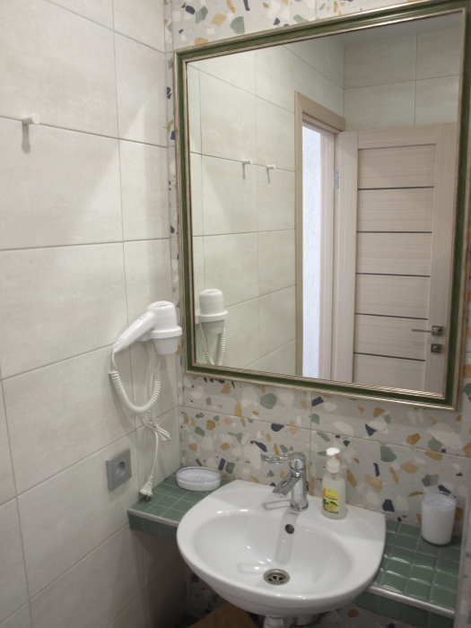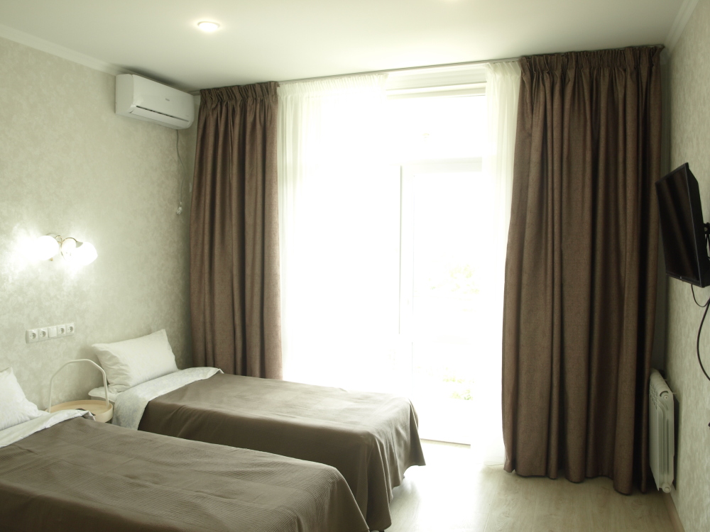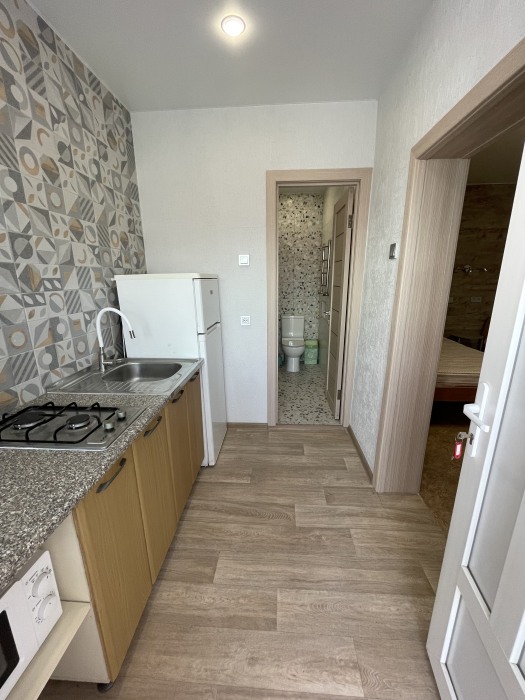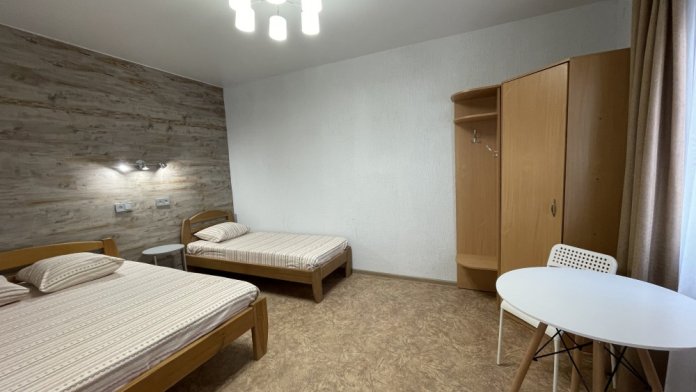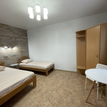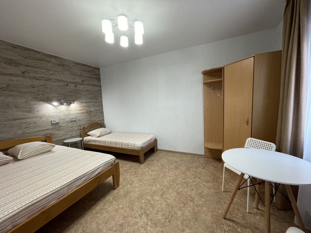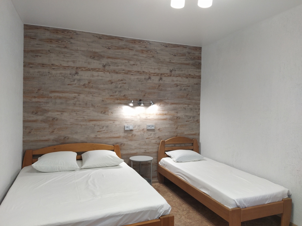 Улучшенные отдельные апартаменты на 2-3 чел с кухней (комната 14 кв.м + личная кухня-коридор + отдельный санузел с душем, кондиционер) с двуспальной и односпальной кроватями;