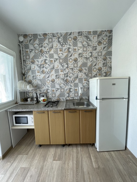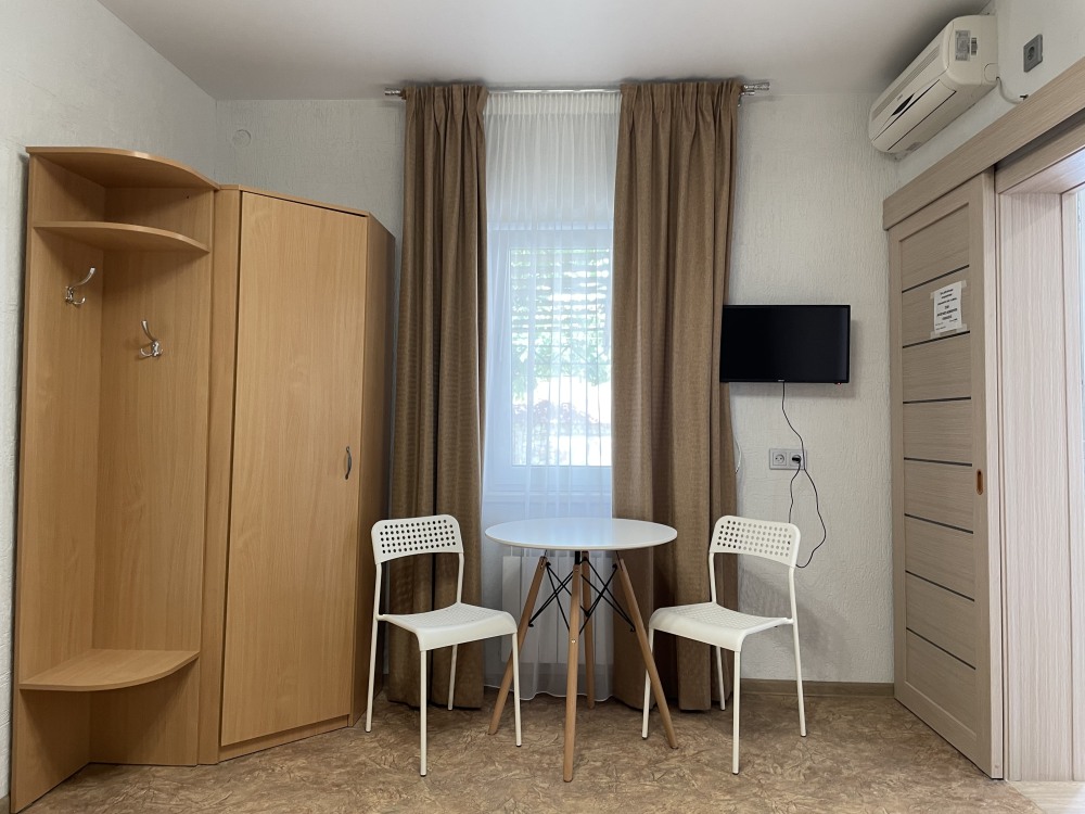 3) отдельные апартаменты класса «стандарт» на 2-3 чел. (комната 14 кв.м + личная кухня-коридор + отдельный санузел с душем, кондиционер) с двуспальной и односпальной кроватями; Размещение животных просьба согласовывать с нами. Сдается и в межсезонье.