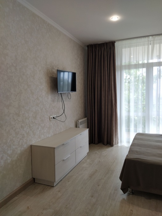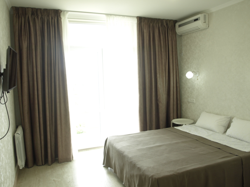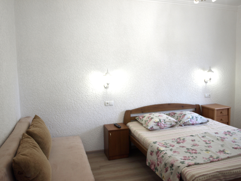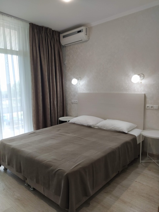 1) отдельные 1-комнатные апартаменты класса «комфорт» на 2-4 чел. (спальня 14 кв.м, кухня 6 кв.м, санузел с душем, кондиционер) с двуспальной и диван-кроватью;