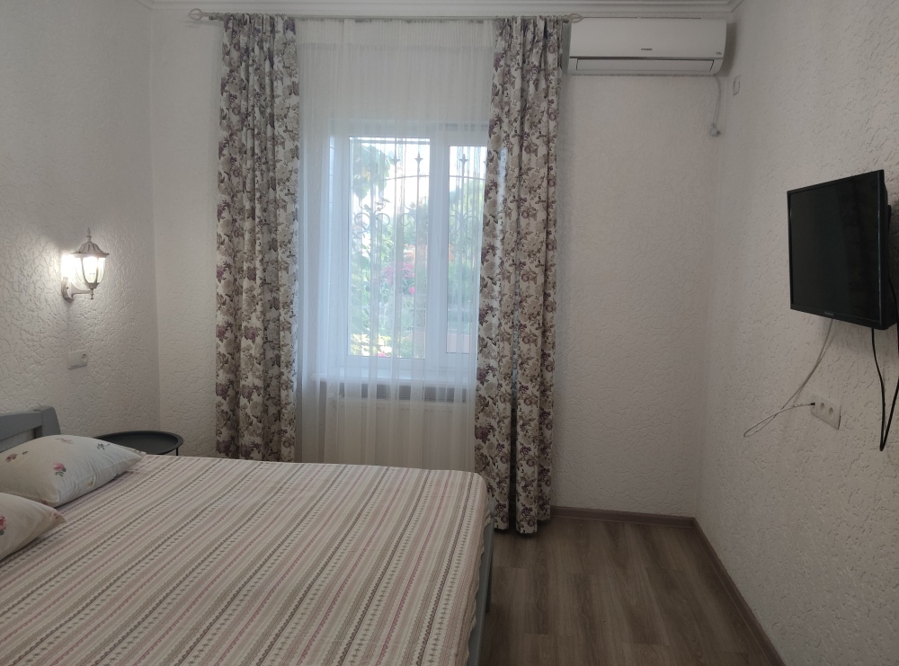 Отдельные 1-комнатные апартаменты класса «комфорт» на 2-4 чел. (спальня 14 кв.м, кухня 6 кв.м, санузел с душем, кондиционер) с двуспальной и диван-кроватью;