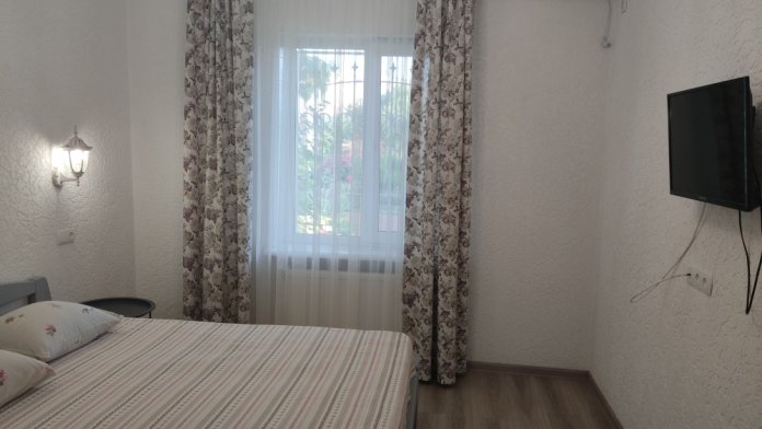 Двор под присмотром, озеленен, ухожен. Есть беседка, бесплатная парковка возле ворот, мангал, Wi-Fi, стиралка. У каждой семьи на улице - личное пространство со столиком. Рядом - продуктовый магазин, кафе, остановка маршрутки.