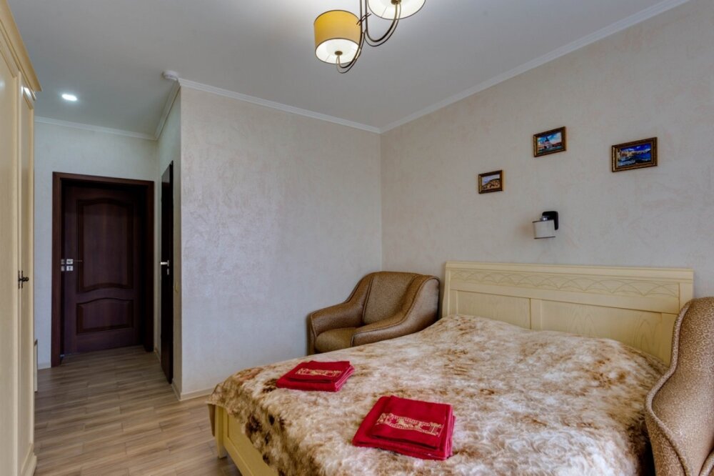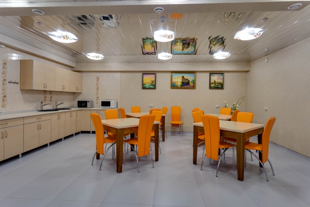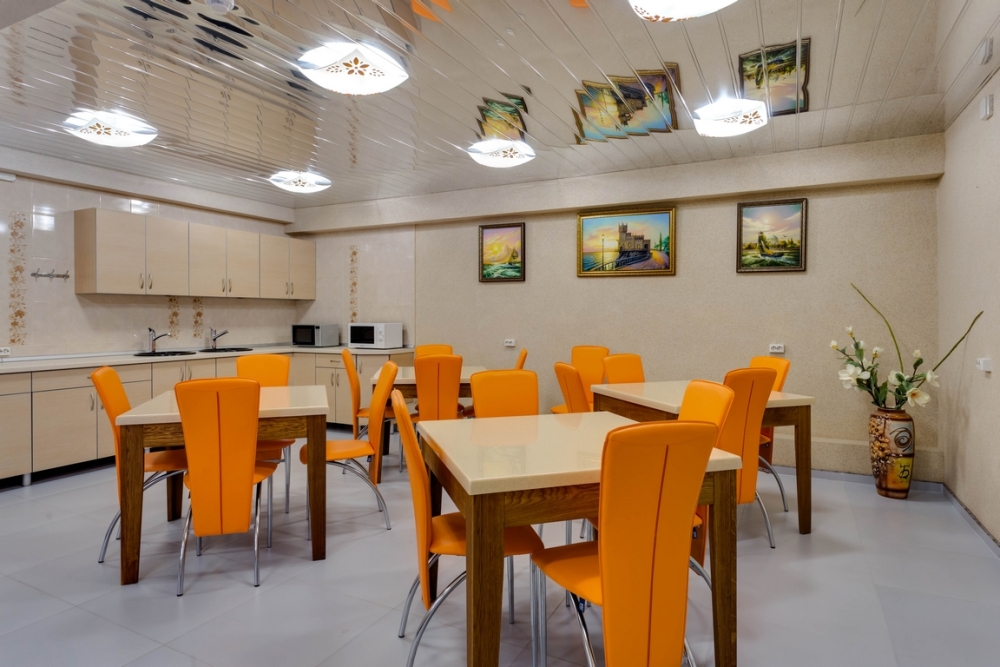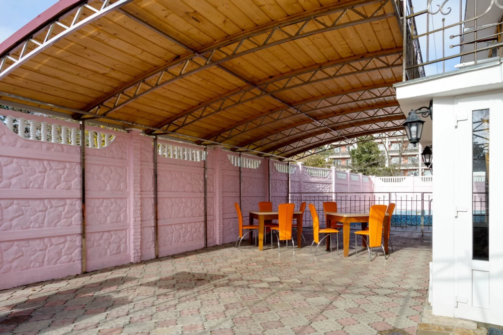 На территории гостевого дома расположена удобная кухня, на которой Вы сможете приготовить свои любимые блюда. Также имеется гладильная и прачечная. Мы заботимся о здоровье своих гостей, поэтому в отеле установлена современная система очистки воды. Теперь для приготовления пищи, и принимая душ, Вы будете использовать только качественную чистую воду. Во дворе отеля имеются две большие беседки, в которых будет очень комфортно проводить время на воздухе отдыхать всей семьей. Для детей во дворе установлена площадка с качелями и горками. А рядом с гостевым домом бесплатная парковка для наших гостей.
