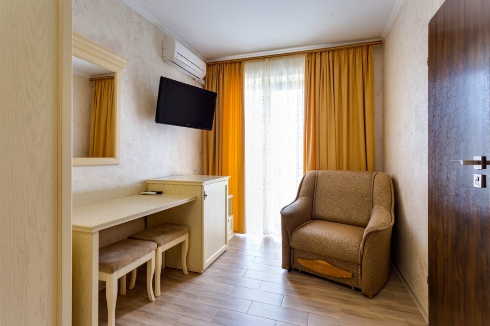 Ухоженный тенистый двор с беседками, светлые и комфортные номера, приветливый персонал – Вас ждет атмосфера спокойного и безмятежного отдыха.