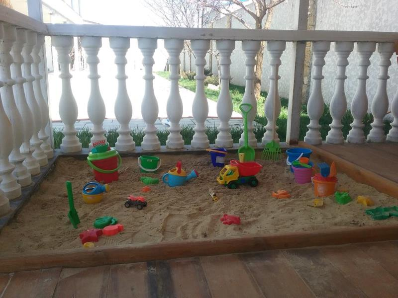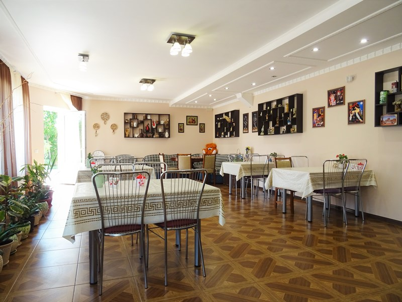 Для удобства гостей на территории есть бассейн (каркасный), мангал, парковка, детская площадка. Работает свое кафе. В некоторых номерах есть личная кухня.