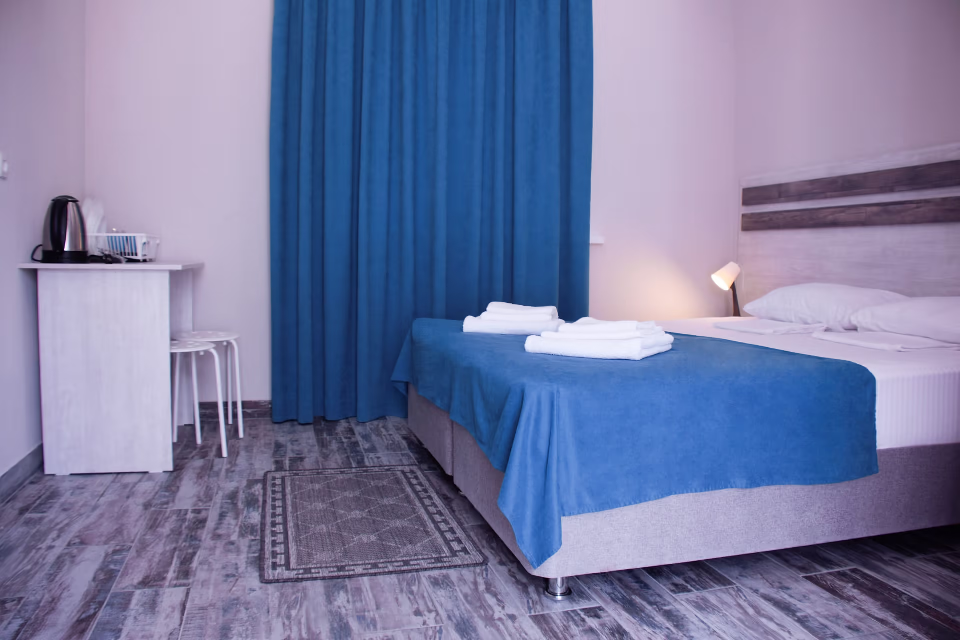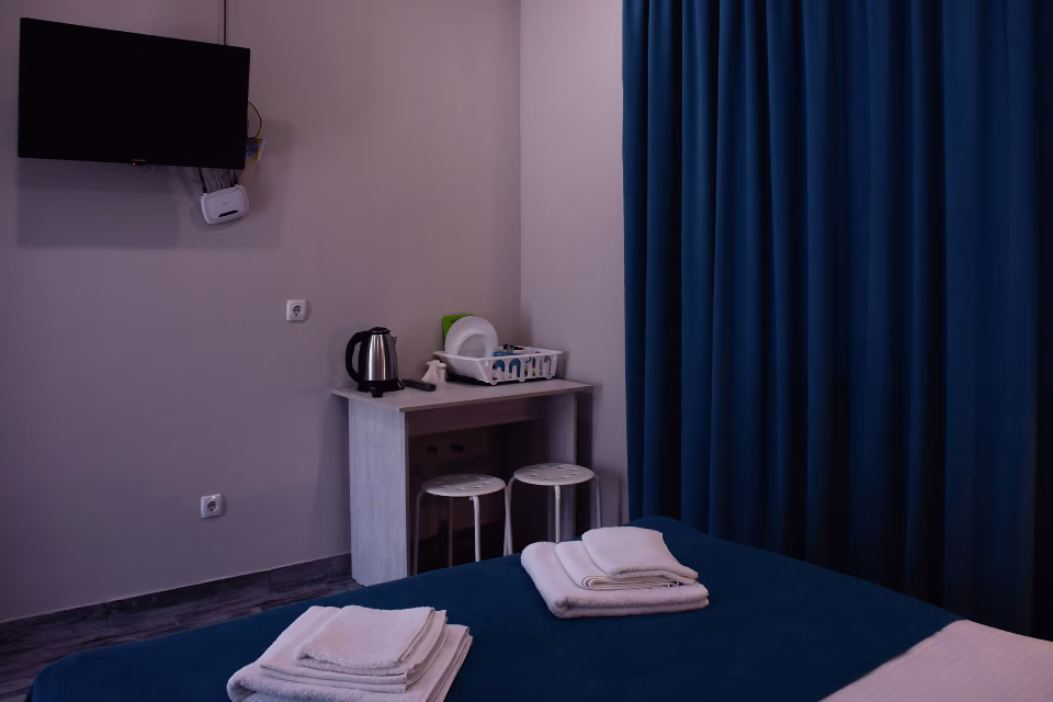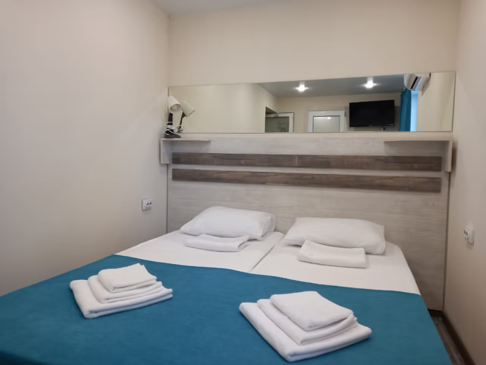 Извините мы отказались от номера в связи с удаленностью от обьекта Херсонес мы пожилые люди и очень хотелось прогуляться по музею и отдохнуть полежать потом опять пойти по музею,учитывая что концерт на территории идет почти до 22.00 и затем опять идти в номер. Музей большой и сразу все не осмотреть а.для проживания номер неплохой мы посмотрели и ушли