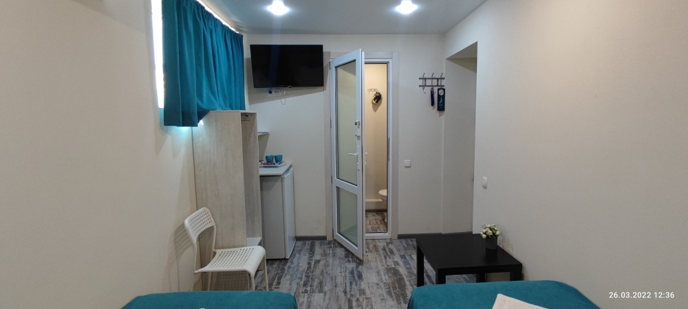 Компактные, уютные, современные номера рассчитаны на 2 основных места, располагаются на 1 этаже. В номере окно выходит в общий коридор.