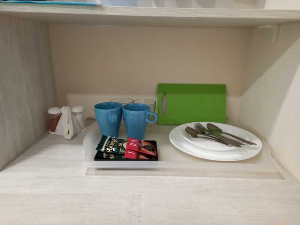 В общем доступе на этажах есть кулер с горячей и холодной водой, микроволновка, утюг и гладильная доска.
