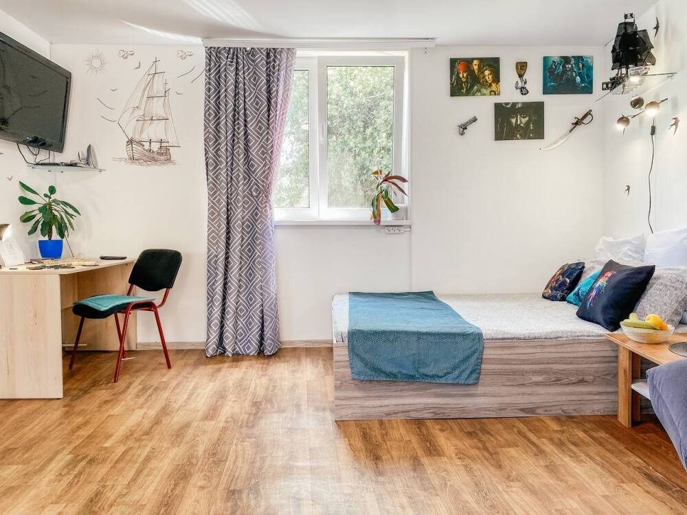 Уютная и светлая квартира в стиле Пиратов Карибского моря. Вы будете в восторге - тематические картины, книжки и предметы интерьера , все подбирали с душой и любовью.