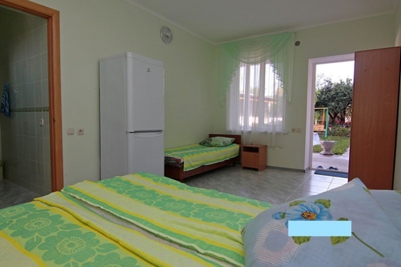 Номерной фонд представлен уютными и комфортабельными номерами. Имеются 1,2,3,4-местные номера, которые оснащены всей необходимой мебелью. Во всех номерах имеется душ, умывальник и туалет. Каждый номер имеет современный и уникальный интерьер. Номера в гостевом доме выполнены в зеленом, розовом, бежевом, персиковом цветах. Данная разноплановость позволит Вам выбрать понравившийся номер, который будет подходить как для отдыха семьей, молодоженам, отдыха с друзьями. Все номера выходят на уютный дворик с красивой и приятной зеленью, где можно приятно провести время за обеденным столом.