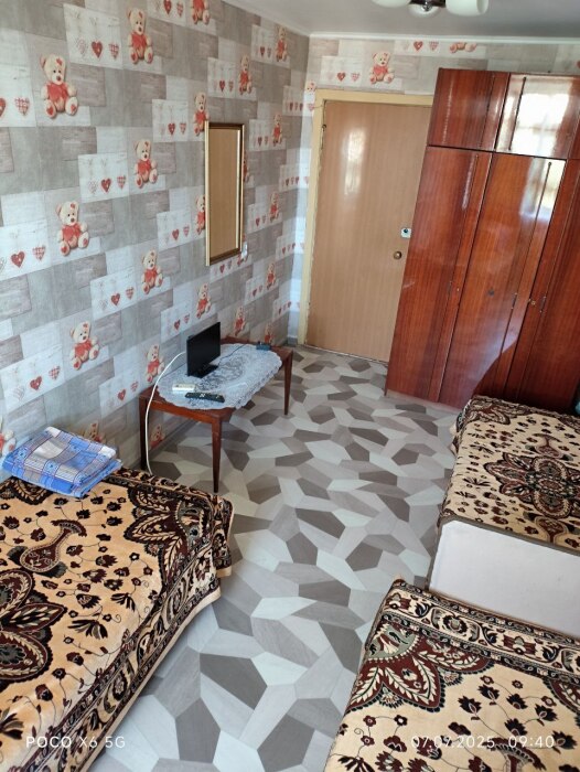 Номер с удобствами в номере и небольшой кухней. Этаж 2. Отдельный вход. Двор просторный зелёный. Закрытая площадка для детей. Место для парковки автомобиля.