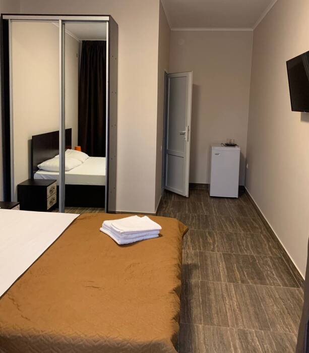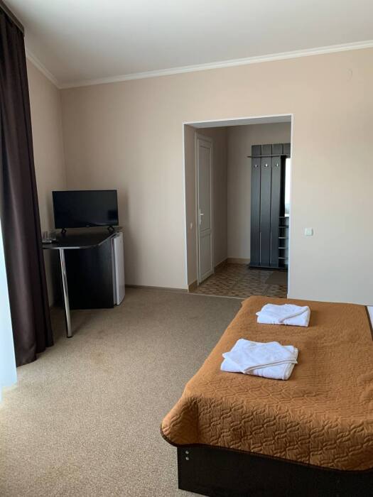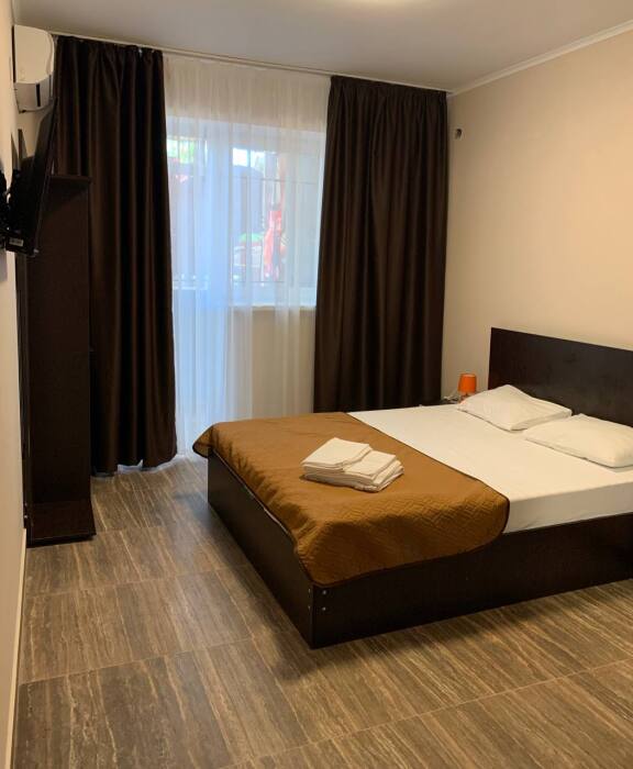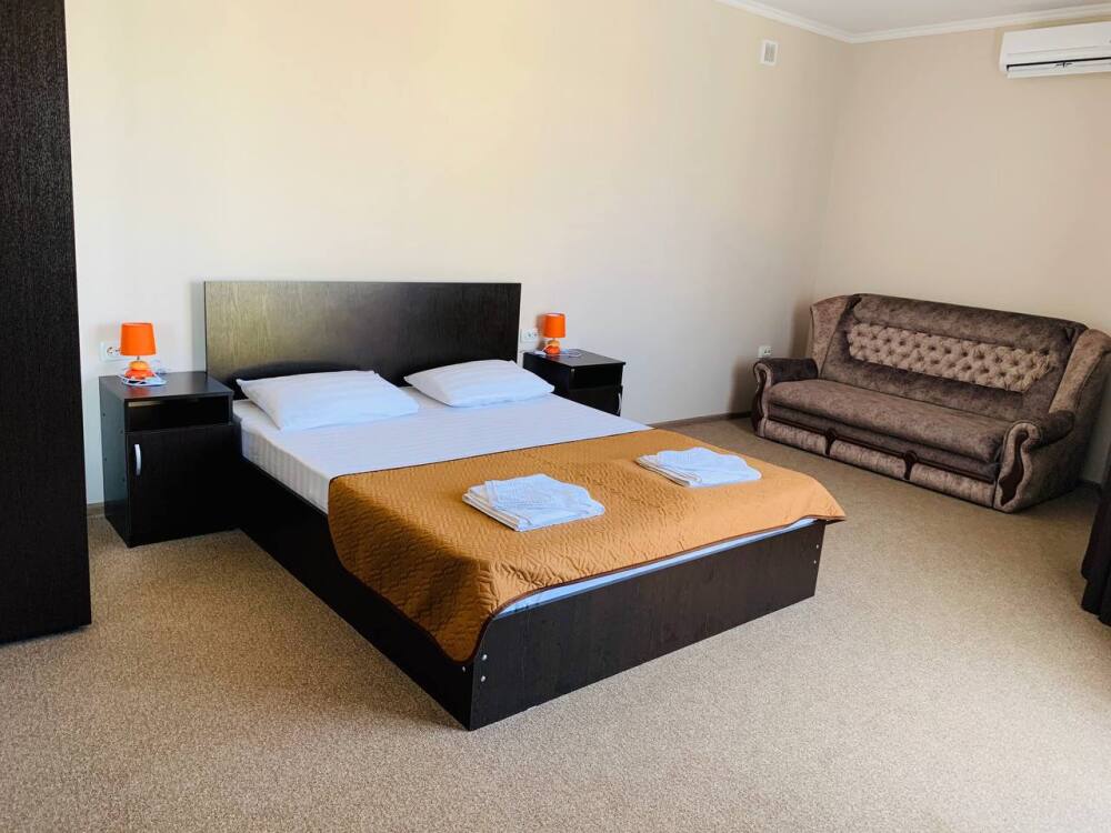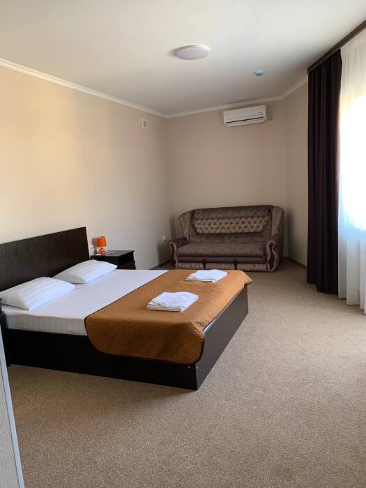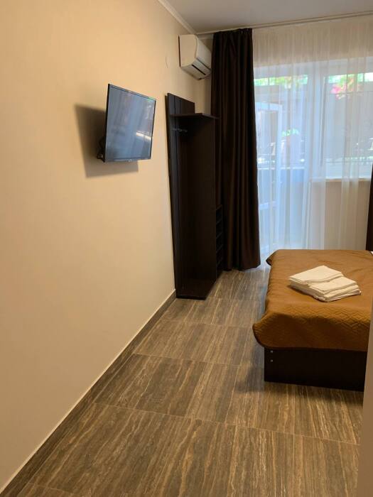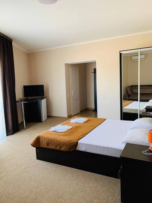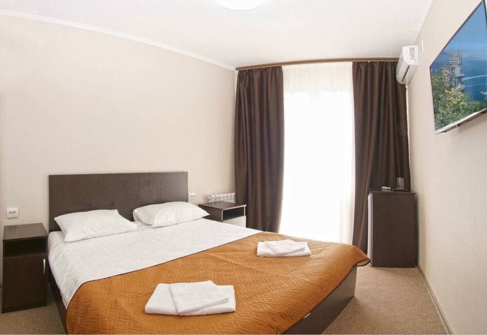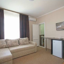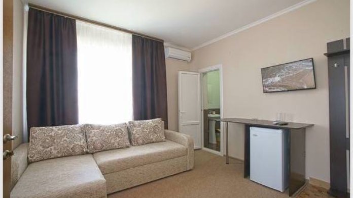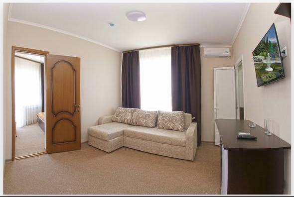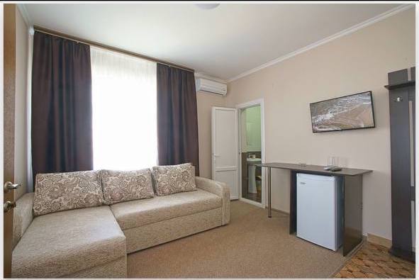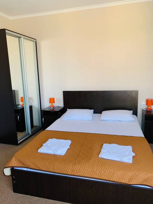 Все номера комфортабельные, выполнены в индивидуальном стиле, оборудованы отдельным санузлом с душевой кабиной (холодная и горячая вода - круглосуточно). В каждом номере: кондиционер, холодильник, телевизор, фен, удобная мебель. Большинство номеров с лоджиями и видом на море.