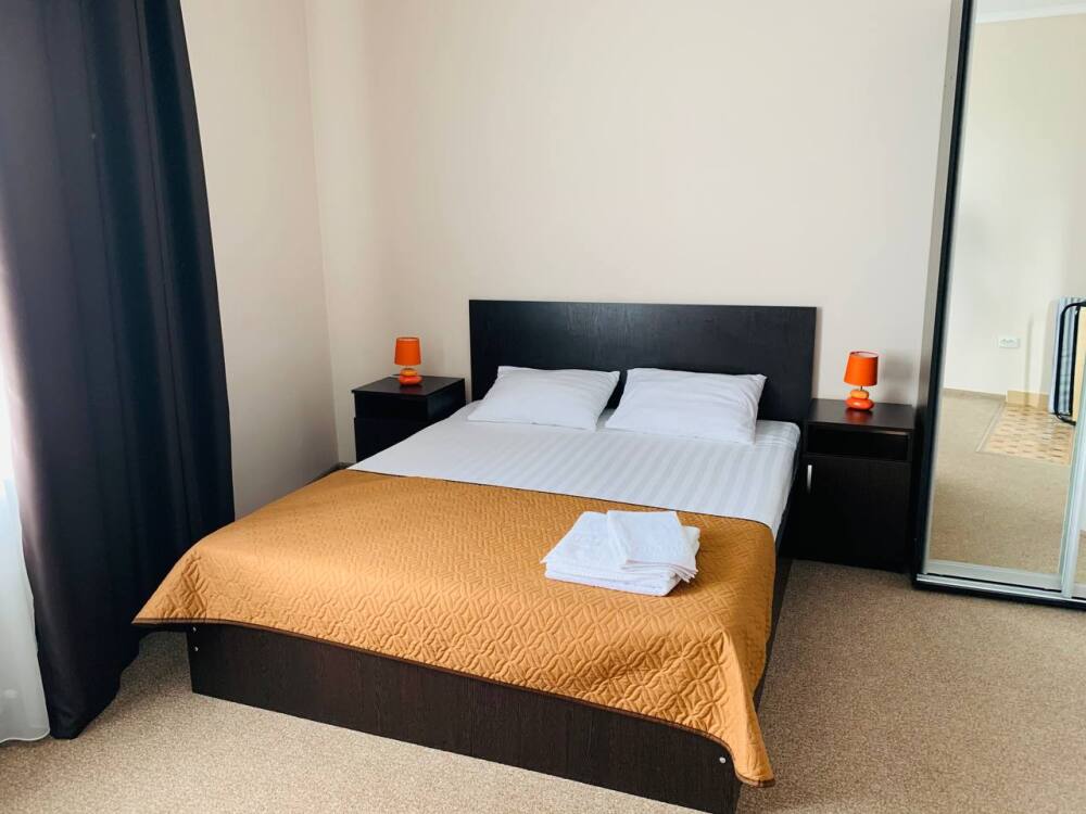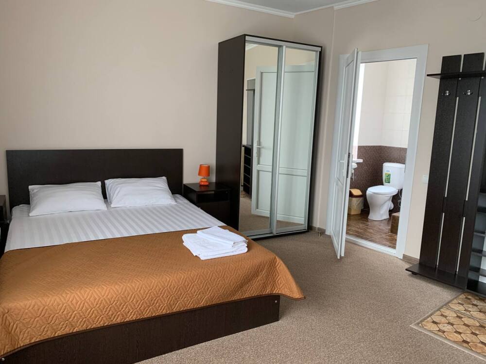 В гостевом доме 33 номера со всеми удобствами, кафе на территории, уличная терраса, мангальная зона.