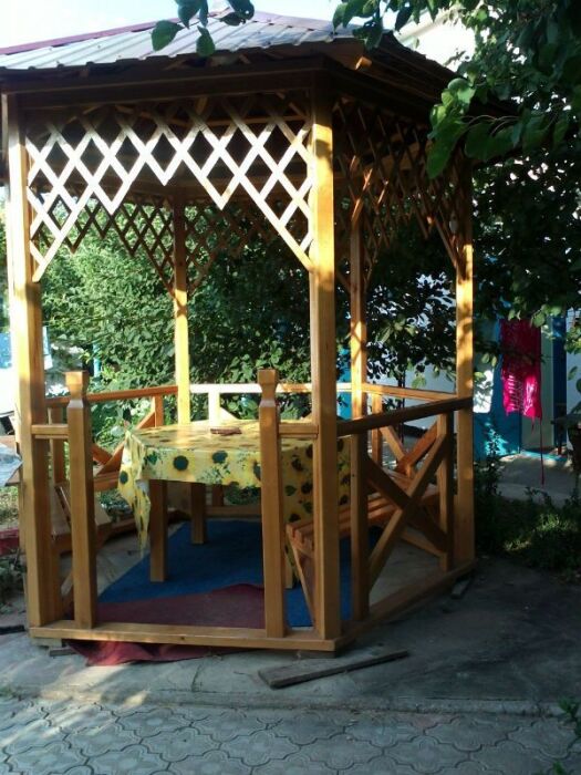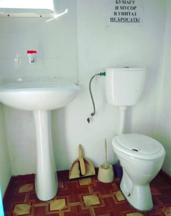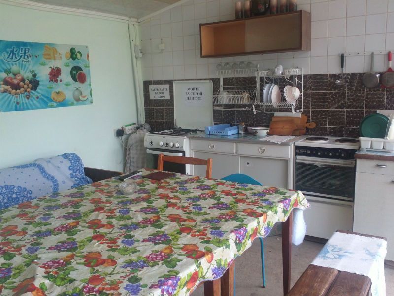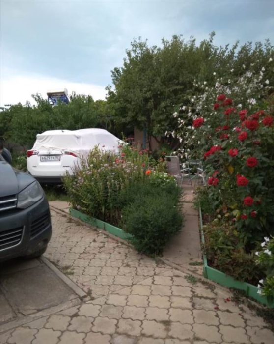 Во дворе в отдельно отведенном месте расположены 4 летних душа, отделанные кафелем, с подогреваемой через гелиобатареи водой, 2 раковины (мойки), канализация из комнат и душевых кабин централизованная. На территории растут фруктовые деревья, виноградник, всевозможные цветы. Большая часть двора покрыта плиткой. Для культурного отдыха днем и вечером имеются 4 специальных места под зонтами и покрытием, где установлены столы и места для сидения. Кроме этого, во дворе располагается специальный крытый кухонный блок со столами, скамейками, холодильником, большим телевизором, электро и газовой плитой, микроволновкой, мультиварка, чайником – термосом и всевозможной посудой. Здесь отдыхающие всегда могут приготовить себе обед. Для любителей шашлыков есть мангал, шампура и решетка для барбекю.